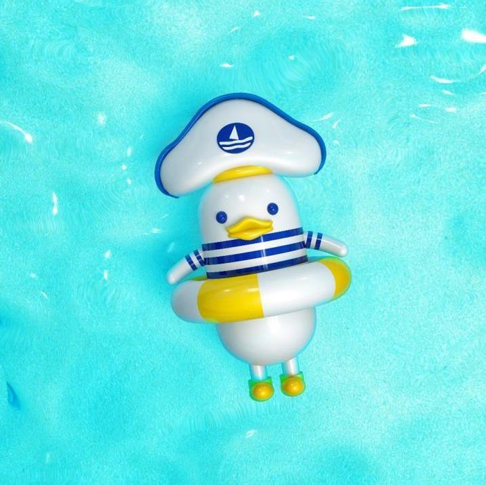 而作为一个拟人化IP,“趣浪鸭”不但在穿着上具有明显的海洋特征——身着navigare经典条纹海魂衫,头戴帆船印花船长帽,日常最爱的玩具是各式各样的游泳圈,仿若每时每刻都在海里畅游。