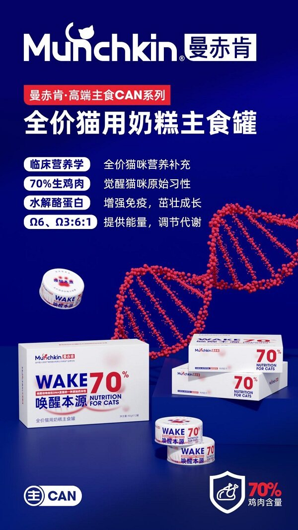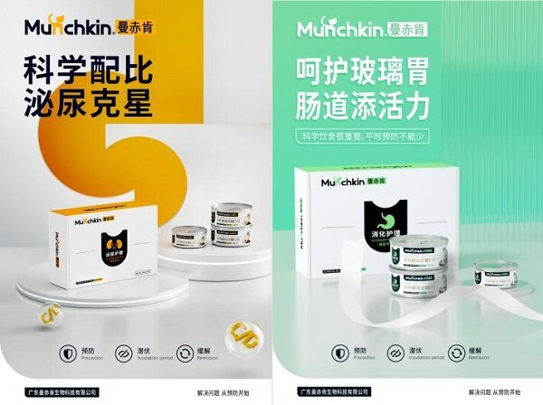 另一系列新品曼赤肯【全价护理主食功能罐系列】作为2022年另一主打新品系列,每一款产品都是根据宠物临床营养学研发的功能性主食罐,引领爱宠精准喂养时代,根据爱宠所需功效、营养专门研发的护理主食罐系列。目前该系列旗下产品有【全价猫用康复护理主食罐】、【全价猫用泌尿护理主食罐】、【全价猫用肾脏护理主食罐】、【全价猫用肠胃护理(猫犬)主食罐】、【全价猫用皮肤护理主食罐】等六款产品。