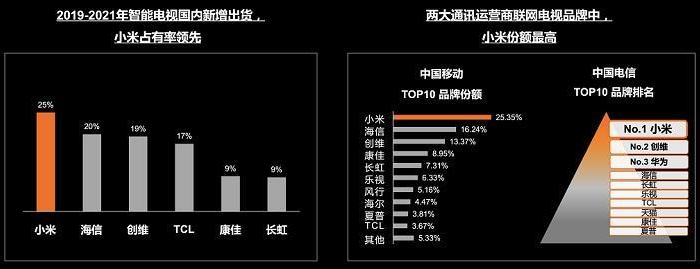 对比来看,2019-2021年国内智能电视新增出货量,小米的占有率在行业中领先;在两大通讯运营商联网的电视品牌中,小米的份额最高;同时在品牌健康度表现方面,小米智能电视的用户忠诚度、使用体验和口碑也都突出。足可证明小米电视的整体硬实力表现。