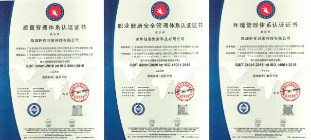 发展至今,轻喜到家服务覆盖数万个高端小区及超300万中高端家庭用户,先后获得ISO9001质量管理体系认证、职业健康安全管理体系认证和环境管理体系认证,建立起国际一流的的质量管理体系,且在深圳市消费者委员会公布的2022年家政行业消费评价指数排行榜中位列首名。