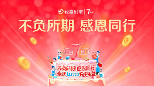 据悉,此次轻喜到家七周年庆以“不负所期,感恩同行”为主题,活动时间为7月13日至8月16日,同时开设了主会场、专业保洁、星级保姆、新人特惠、奢侈品护理、家电清洗、家居养护、育婴月嫂八大专场,全线产品联袂让利,豪送4000万庆生礼,满足家庭多元需求场景。