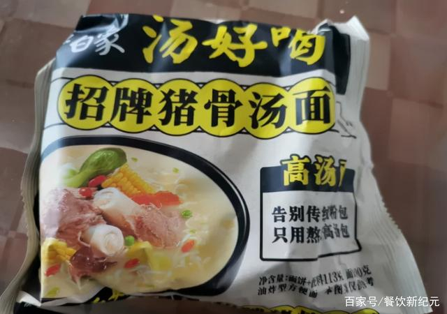 猪骨汤面被称为是白象的招牌方便面,强调汤好喝,虽然说是猪骨汤面,但其实跟猪骨是没有啥关系,但是泡面的汤汁喝起来确实很有股香浓的猪骨风味。