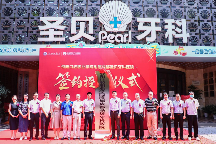 在签约揭牌仪式上,资阳口腔职业学院与成都圣贝牙科医院双方领导人都充分肯定了本次校企融合的积极意义。