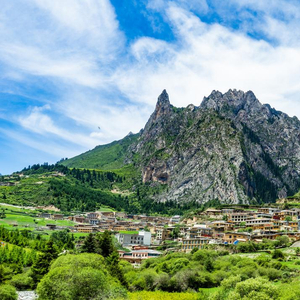 在甘肃甘南迭部县西北的甘川交界处,有一座传统的藏族古村扎尕那村。这里四面崇山峻岭,犹如屏障将烦扰“避之门外”。在山峦包围中逐渐成长的扎尕那村,犹如自然生长出的石城,藏语意为“石匣子”。这座天然石城由四个散落在白龙江流域的峡谷地带的自然聚落组成,古朴而优美,每到夏天满眼尽是蓝天、绿山、碧水,似人间仙境,令人赞叹不已。扎尕那村是甘南旅游圣地,这里有雄浑的涅甘达哇神山、神奇的扎尕那地质公园、奇特的扎尕那石林等自然景观。