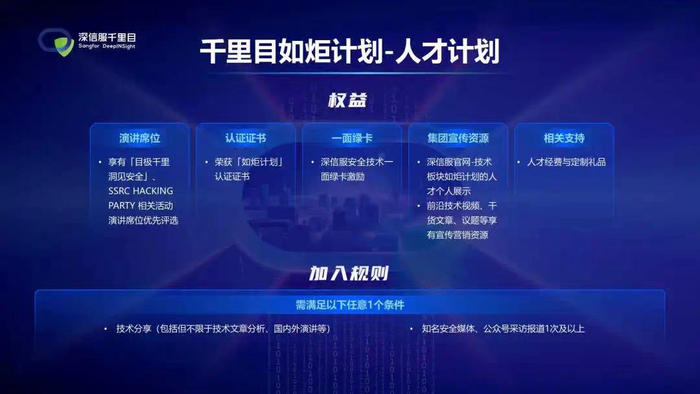 人才计划:旨在为新生代技术力量打造一个纯粹而高价值的安全交流圈,共同营造良好的技术交流氛围。