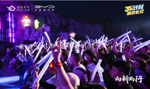 而在与比亚迪的跨界合作中,墨迹天气利用自身已持续7年 “35℃度计划”的夏日公益IP资源,深挖与比亚迪的品牌价值、元Pro的车型价值间的内在关联,实现创意连接,积极贴合年轻人消费趋势与绿色主张,筛选出最适合比亚迪元Pro车型的认知场景,将“IP营销+公益营销+试乘试驾+用户圈层”四维联动。