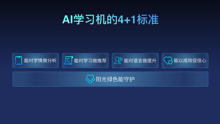 在AI学习机业内和市场,大家比较认同的标准是国内人工智能头部公司科大讯飞发布的AI学习机“4+1”标准:“能对学情做分析,能对学习做推荐,能对语言做提升,能以成效促信心,绿色阳光能守护”。坚守AI学习机的“4+1”标准,科大讯飞在今年6月发布了AI学习机 X3 Pro和Q20两款新品。