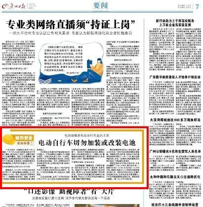 7月中旬,广州三天之内发生两起电动自行车起火事故,引发社会和媒体的高度关注。广州日报撰文提醒广大市民,电池故障是电动自行车起火的主要原因,用户不要加装、改装电池;电池要定期到正规店铺更换,充电时间不宜超过12小时。