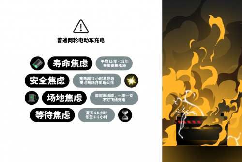 业内人士反应,传统两轮电动车充电过程存在四大焦虑: