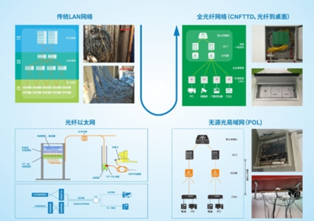 全光纤网络(CNFTTD,光纤到桌面)解决方案的所有实际工程均可做到工程级,可以通过甲方组织的任何级别的工程验收。
