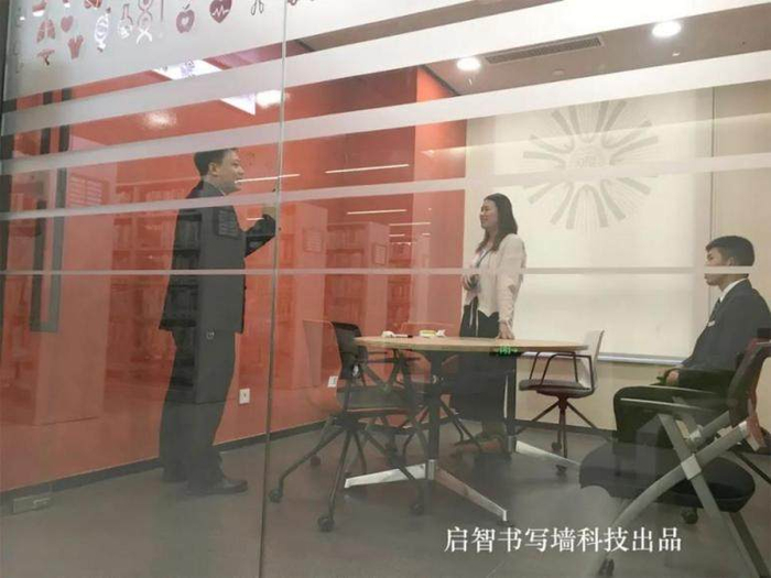 启智书写墙在德威国际学校、杭州国际学校等一批国际学校的应用,为孩子培养创造力提供更加好的环境和解决方案。复旦大学、浙江大学、深圳大学的应用,就包含了2类崭新的应用,第一类应用是高效教学改革中引入了一定比例的交互式讨论课程,增加学校的探究式学习环节。学生在这样的创新环境下学习,不是以知识记忆为主要学习任务,而是以探究讨论学习方面的内容,实现团队交互的方式进行学习,更容易贴近社会学习,非常有效的提升了学生未来竞争力。此类运用书写墙构建互动教室的做法变得越来越广泛。另外一类是多校互动远程教学课程的实现,可以使高质量的教学资源更被充分利用,同时,学生可以不限时空地分享到优秀课程。因此,对需要传递的上课画面信息需要越清晰越好,通过投影和书写墙的结合,可以实现画面的最大化,同时保留了老师随时自然书写的功能。