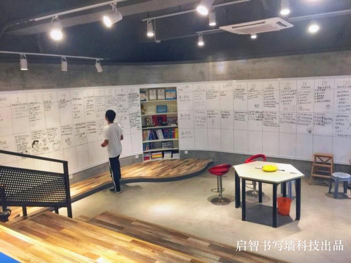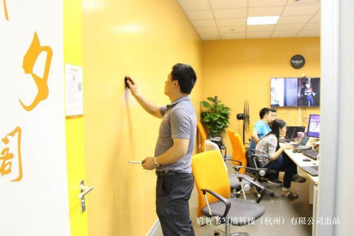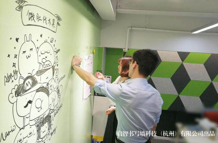 书写墙在企业的创新环境中非常受欢迎。Google、苹果、Facebook、阿里等一大批现代创新型企业中,都在其空间中布置了各式各样的书写墙设计。为什么这些企业需要采用书写墙的设计?创意首先源于激发,空间环境的布置需要有利于团队成员感觉轻松和充满创意,书写墙可以配置为各种颜色和造型,非常有利于支持这个需求的实现;其次,产品支持团队讨论时随时随地把创意写下来,这些写下来的创意,本身又会是成为创意文化的一部分。这种功能的实现,是书写墙产品被创新创意群体选择的关键所在。启智书写墙在阿里巴巴、阿迪达斯、学而思集团、诺梵系统、开始众筹、有赞、EA、阿斯利康、西门子、穆氏设计等企业之中,都被广泛运用。