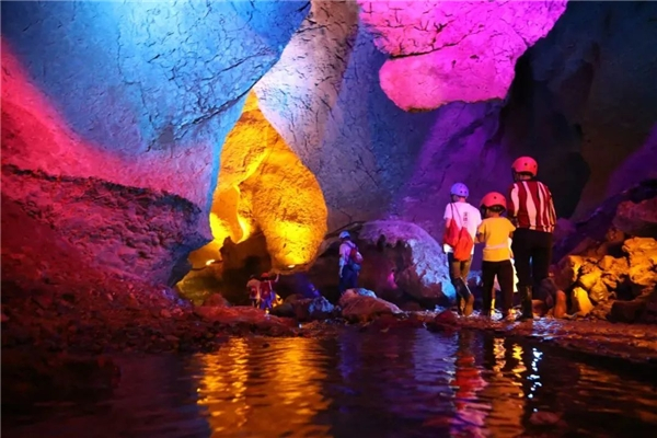 游玩特点:整个洞内全程涉水,天然洞穴漂流,常年保持18℃,此处避暑,实乃佳境。