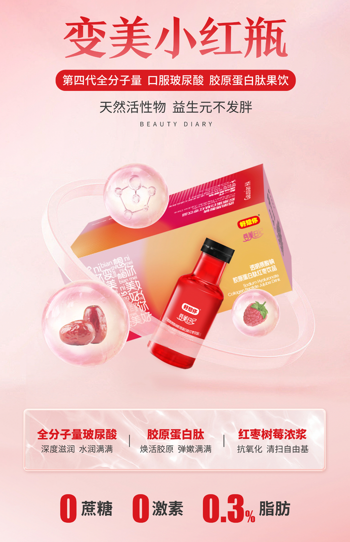 变美日记联名好想你推出新一代口服功效饮品“变美小红瓶”