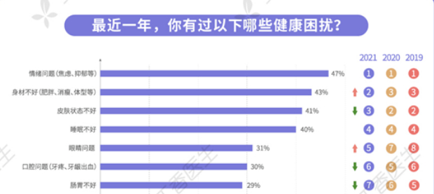 2022年3月29日,丁香医生发布《2022国民健康洞察报告》,”皮肤状态不好“困扰41%调查人群,位列第三