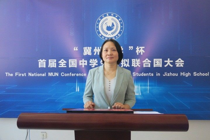衡水市冀州区副区长龙红华出席开幕式,她向参会嘉宾和代表介绍了冀州区深厚的文化底蕴和人文历史,她说:“冀州作为九州之首,有2200多年的建制史,有深厚的历史文化底蕴;冀州也是新中国外交官的摇篮,新中国外交部首任领事司司长秦力真就是冀州人,原外交部部长李肇星等多次到冀州为同学们做报告,在学生的心中种下了外交官的种子”。