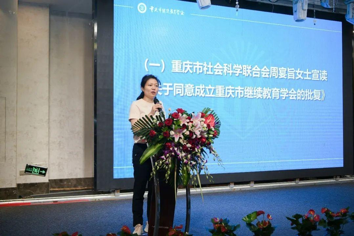 第一届会员代表大会上,重庆市社会科学界联合会周宴旨女士宣读了《关于同意成立重庆市继续教育学会的批复》,表示该学会可开展与继续教育相关的理论研究、学术活动、咨询、培训等服务活动和成果的转化活动,编辑出版与继续教育相关的刊物、资料以及开展其他有利于继续教育发展的活动。