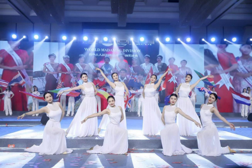 紧接着部分候选夫人及礼仪大使高举着旗帜入场,并在2021全球总亚军刘良子夫人主创作并演唱的《We are Word Madams》音乐声中掀开了总决赛第一篇章,夫人和代表团们向现场来宾和直播端口的观众展示了独特的自信与优雅。