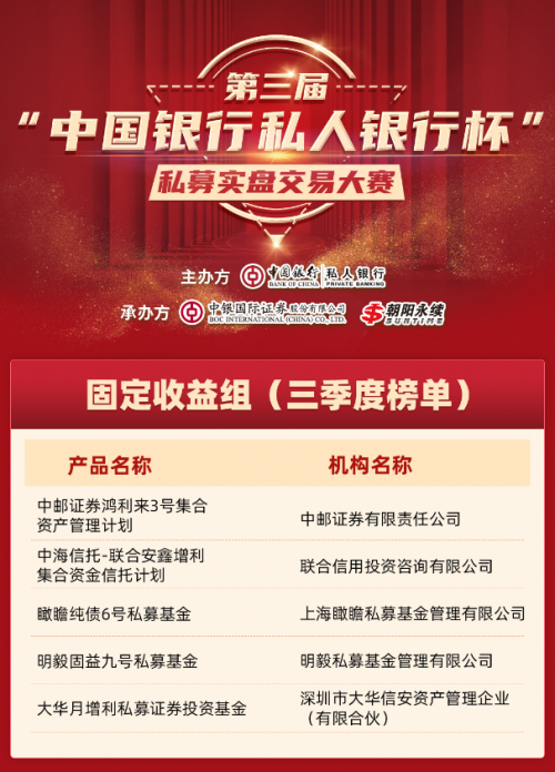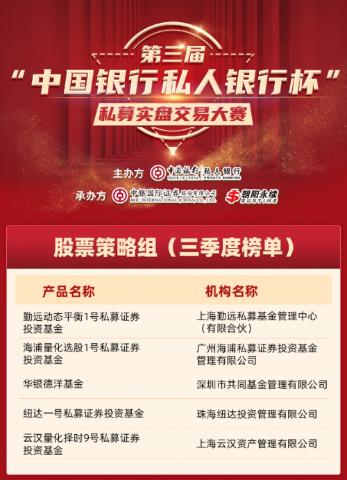 第三届“中国银行私人银行杯”私募实盘交易大赛三季度榜单发布!逆势上涨的赢家是谁?