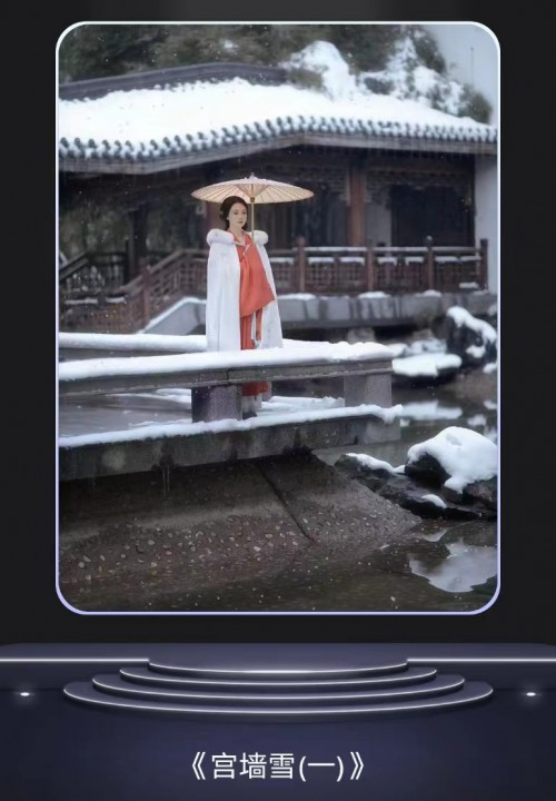 宫墙掩朱颜,亭台落雪音,天朗云舒,不似旧年意,但凭今朝别去岁,新酒敬新愁。