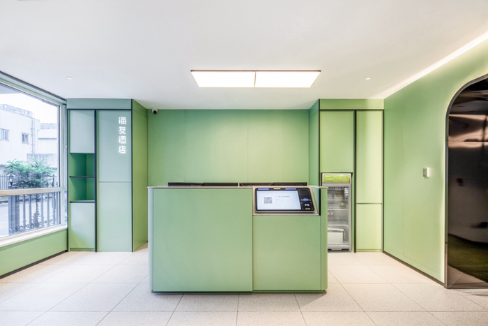作为华住旗下标准化平价酒店品牌,海友酒店充分结合了对平价市场的敏锐洞察,从设计源头出发,在不断优化造价成本的基础上强化了公区的自助化功能,大幅提升酒店空间的利用率和运营效率,使每一寸空间都能以不同的功能满足多样需求。海友沈阳建筑大学学城路酒店采用绿色自助化公区方案,整体简约却不失活力,提升了住客的体验,为住客带来更加方便高效的服务,同时有效优化前台人力成本、释放冗余人力,为投资人省下运营成本。