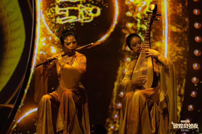 国乐小队的琵琶、笛子现场演奏,将营造一个生动、沉浸的音乐会现场。此外,细心的观众还会在舞台上发现敦煌壁画中的其他特色乐器。