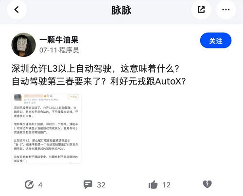 国内首部L3级法规落地,脉脉网友热议职场风口