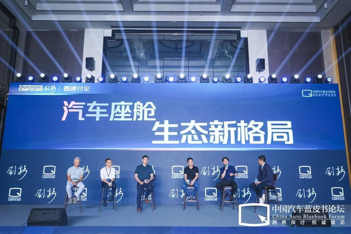 演讲结束后,徐俊峰又与SoCar产品战略咨询创始人、CEO张晓亮,同济大学汽车学院与设计创意学院双聘教授、人车关系实验室创始人马钧,华为智能汽车解决方案BU智能座舱领域总经理王庆文,百度IDG智驾融通创新部、智能座舱业务部总经理苏坦,博泰车联网创始人兼董事长应宜伦一起,围绕“汽车驾舱生态新格局”展开深入探讨。