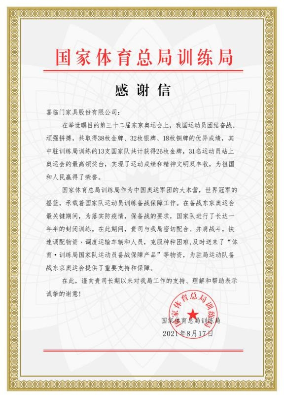 在营收增长的背后,是喜临门坚持科研的路线被高度认可的体现。2021年东京奥运会期间,喜临门床垫作为体育·训练局国家队运动员备战保障产品,为征战赛场的中国运动员提供运动睡眠支持和保障。