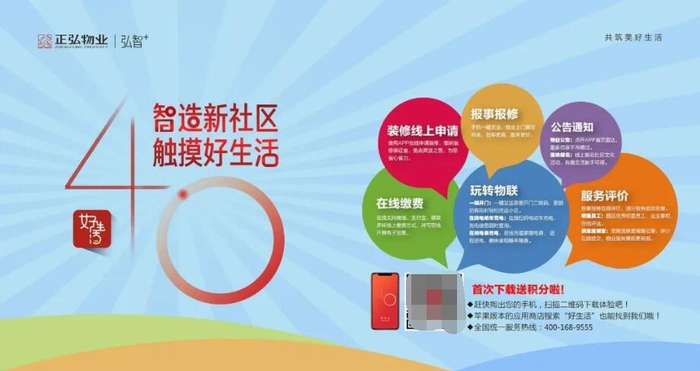在客户服务方面,通过“弘智+”服务平台的打造,助力智慧社区生活圈建设,聚焦客户需求,以场景化、精细化、平台化为基础特点进行场景构建,为用户赋能。实现社区物联设备互联互通,落地931智能安防系统,以及三大服务平台和调度系统,实现园区无盲区,为业主提供“1133”24h无忧服务,好生活APP线上报事报修、缴费充值、优品团购,家政预约等服务的开展,构建全场景化社区新生活,为业主带来更加美好的生活体验。