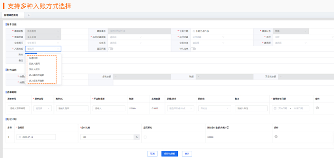 如果公司是按照财务净利润核算提成,对于线下的销售费用、人力成本、管理费用、财务费用等,积加ERP 支持将其录入至【财务】-【请款池】-【其他】中,并支持多种入账方式选择,如果费用笔数非常多,录入的工作量很大,可以通过批量导入的方式方便快捷操作。