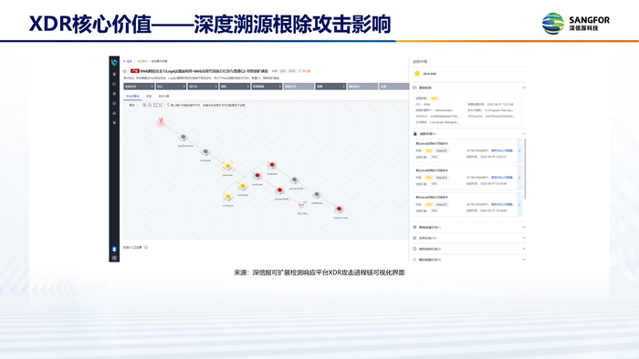 XDR需要从终端失陷溯源、攻击影响面、多主机事件关联和攻击者画像的视角,提供每个威胁攻击过程的高度可视化,使安全运营更高效、安全态势把握更准确。