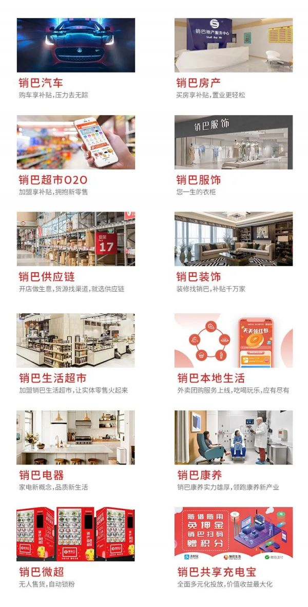 公司的主营业务横跨杭州、重庆、成都、深圳、天津、乌鲁木齐、甘肃等省市,拥有四川省分公司、山西省分公司、杭州分公司、汽车分公司等几十余家下属子公司,其业务版块涵盖销巴超市、销巴电器、销巴汽车、销巴地产、销巴服饰、销巴装饰、销巴供应链、销巴微超等,入驻商家超10万,创造近2万就业岗位,全国设立省级战略运营中心超20家、市区县级服务中心超200家!