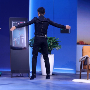 “小度小度,忍者游戏”,“小度小度,合成大西瓜”,“小度小度,我要跳有氧舞”,在世界大会现场,主持人撒贝宁跟随小度添添智能健身镜M30体验了多节体感游戏和健身课程,玩得大汗淋漓。