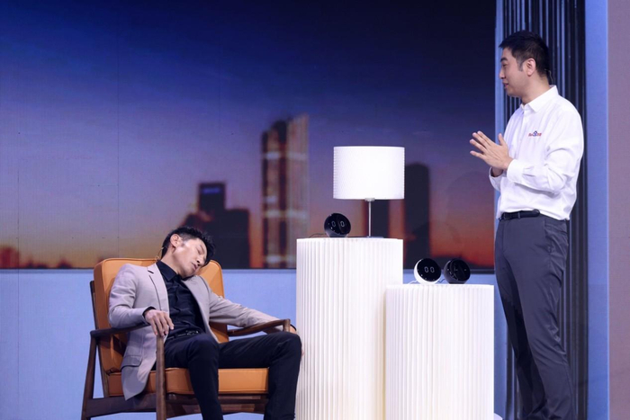 “小度小度,我要睡觉了”,“小度小度,关闭落地灯,再把窗帘也拉上”随着小度科技CEO景鲲的语音指令下达,小度智能语音闹钟不仅为撒贝宁播放起了助眠的“下雨声”,还远程操控关上了落地灯和窗帘,营造出浓浓的助眠氛围。撒贝宁更是在沙发上“一秒入睡”,成就“央视主持现场睡着”的名场面。