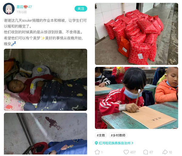小施的故事并非个例,众多年轻人在社交平台Soul上分享着支教生活,传递爱心与正能量。