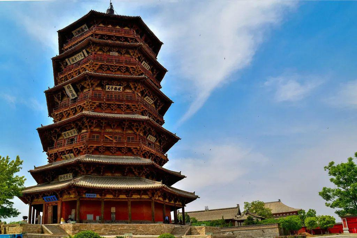 应县木塔建于辽清宁二年(宋至和三年公元1056年),是中国乃至世界现存最高最古的且唯一一座木构塔式建筑,与意大利比萨斜塔、巴黎埃菲尔铁塔并称“世界三大奇塔”。