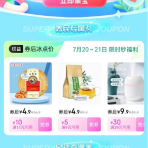高温天气让用户的消暑热情高涨,空调、循环扇、雪糕等消暑神器受追捧。“夏日大作战”活动期间,用户可抢券后9.9、券后19.9等多种专属礼,以及“1分打包夏天”券包,即1分抢超多夏日专属好券,满足夏日多场景、超低价的购物需求。