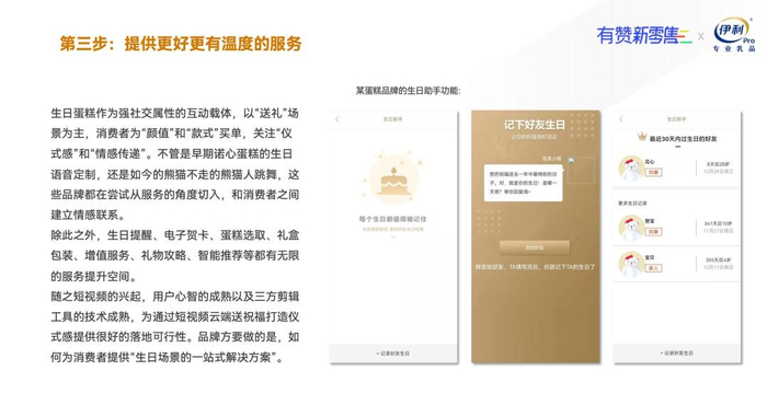 具体来说,培养用户在线预订蛋糕的习惯是基础,不但能够提升门店员工的效率、培养用户离店下单的心智,更重要的是可以将用户数字化,轻松获取其消费信息尤其是生日信息,帮助建立消费者及其关系网络档案库;