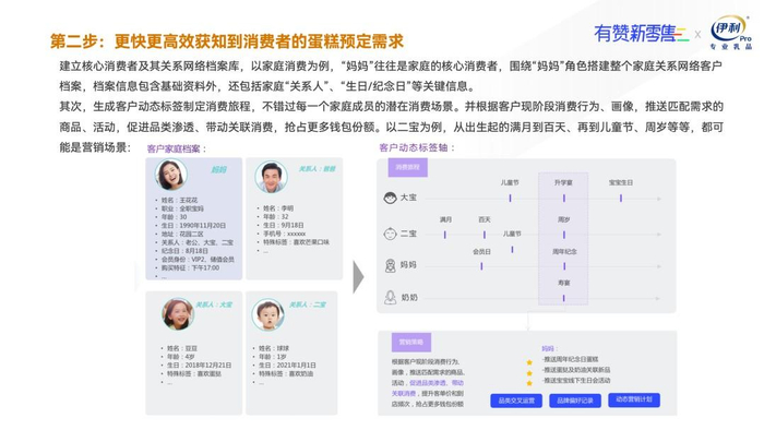 借助消费者及其关系网络档案库,以及生成用户动态标签制定消费旅程,高效获取家庭内不同成员在不同场景的消费需求;最后通过更好更有温度的服务,和消费者建立更深入的情感联系;