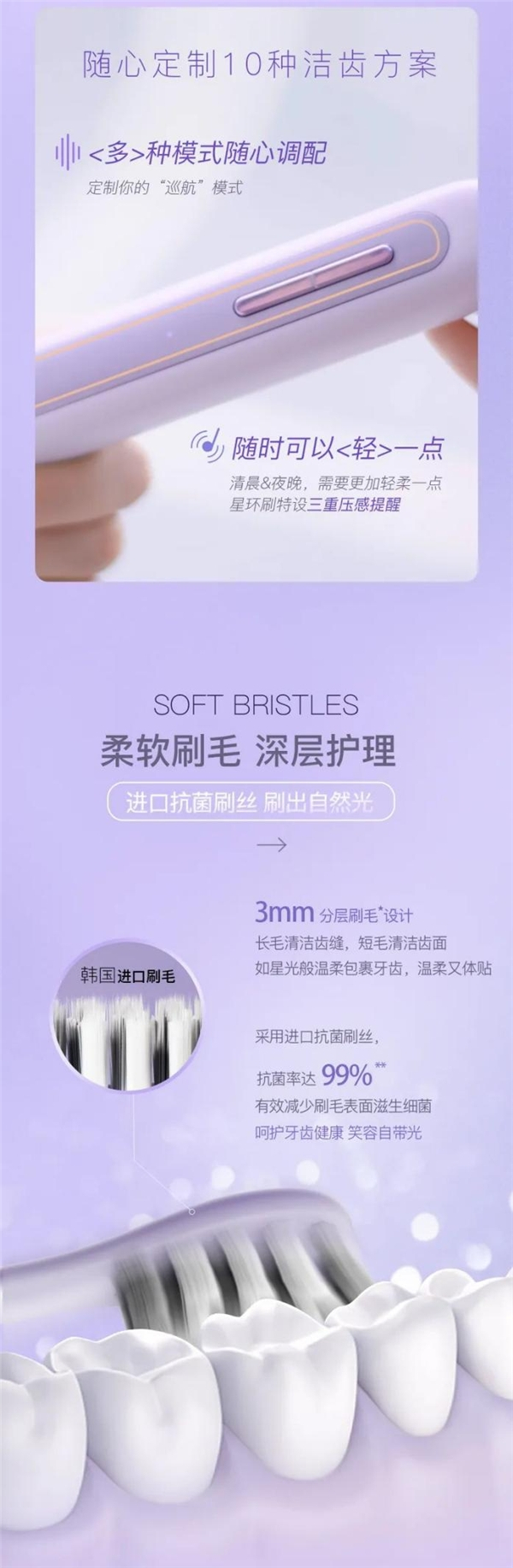 ▽在充满电的情况下,使用敏感呵护档、柔和力度,每天使用2次,每次使用2分钟,可续航220天。具体使用时长因环境和使用习惯不同而有所差异,仅供参考
