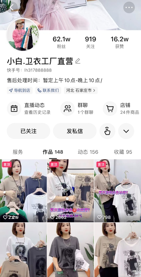 虽然在线下实体童装批发行业已纵横十年,但在快手电商女装赛道里,“小白卫衣工厂直营”的主理人刘哥仍是个新人。