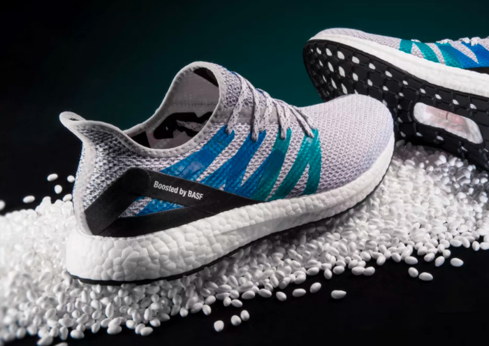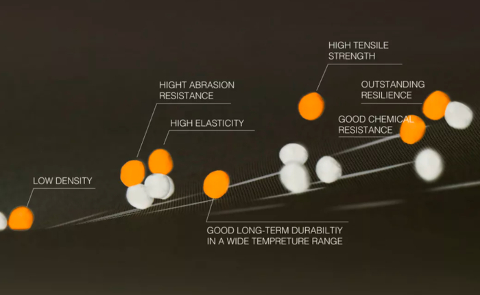 据悉,E-TPU材料是德国巴斯夫集团在2007年发明的一种新型热塑型弹性体材料。它是将固体颗粒材质TPU,用特定的设计工艺加压膨胀后,转化成弹性十足、重量很轻的小能量胶囊。这些小能量胶囊从外观上看起来非常像一颗颗漂亮的“爆米花”,所以,E-TPU材料也被业内称为“爆米花材料”。