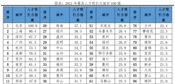 报告还指出,长沙近几年的“人才吸引力指数”一直稳居全国前十、中部第一。截止2021年,长沙的人才总量已经由2017年的110万增至280万。2021年,长沙的中高端人才净流入率更是居全国前三,高精尖人才集中在战略性新兴产业的比例达95%。