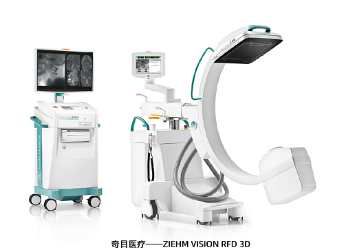 奇目医疗影增系列产品是最早进入中国C臂市场的产品,在中国市场已沉淀多年,有着完善的产品线。其中,ZIEHM VISION RFD 3D被奇目成像描述为“3D成像的革命”,设计理念秉承平衡成本支出与效率,改善患者就诊体验,降低住院时间和降低手术创伤。ZIEHM VISION RFD 3D使用30 cm x 30 cm平板技术的移动C臂,它提供高分辨率的2D成像以及直接在OR中提供类似CT的3D图像,以实现更好的术中控制,减少对术后CT扫描和昂贵的矫正手术的需求。