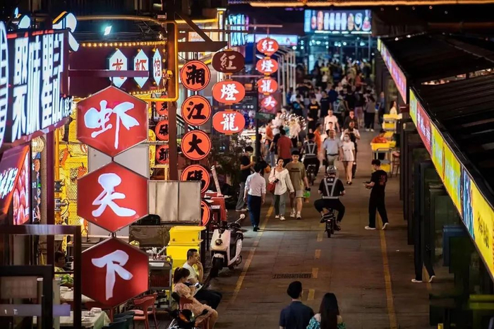 每天都会有超过2万的四方食客,在大排档举杯阔谈。超过150家的小吃店、小龙虾烧烤店的老板,和食客一起,每晚在此起彼伏的吆喝声中,组成了长沙的烟火气。