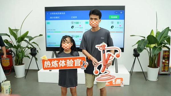 除了线上打卡活动外,线下的城市热炼活动也在如火如荼的进行中,7月10日,在华为智能生活馆·深圳龙岗万达的城市热炼活动就让大家体验了一把热汗淋漓的夏日运动。活动现场涵盖射箭、棒球、攀岩、体感游戏,更有大家所熟悉的绳上飞燕环节,参与体验的体验官们无论跳绳技巧是否高超,年龄大小,都勇于拿起华为智选 沃莱智能跳绳S2进行了1分钟的畅快跳绳。沃莱跳绳竞赛系统也让众体验官感受到了跳绳比拼速度的乐趣!
