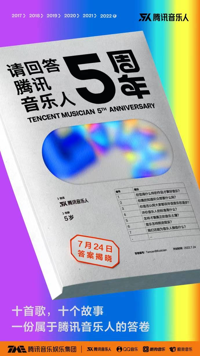 2022年7月,腾讯音乐人迎来了五周年的纪念,围绕「请回答,腾讯音乐人五周年」的特别企划,通过提问和回答的形式,回顾了腾讯音乐人五年来的成长,以10首歌曲作为答卷,别出心裁的形式也引发网络热议。腾讯音乐人的热爱、坚守和社会责任感,在这份满载音乐挚诚的五周年答卷中,得到了淋漓尽致的体现。