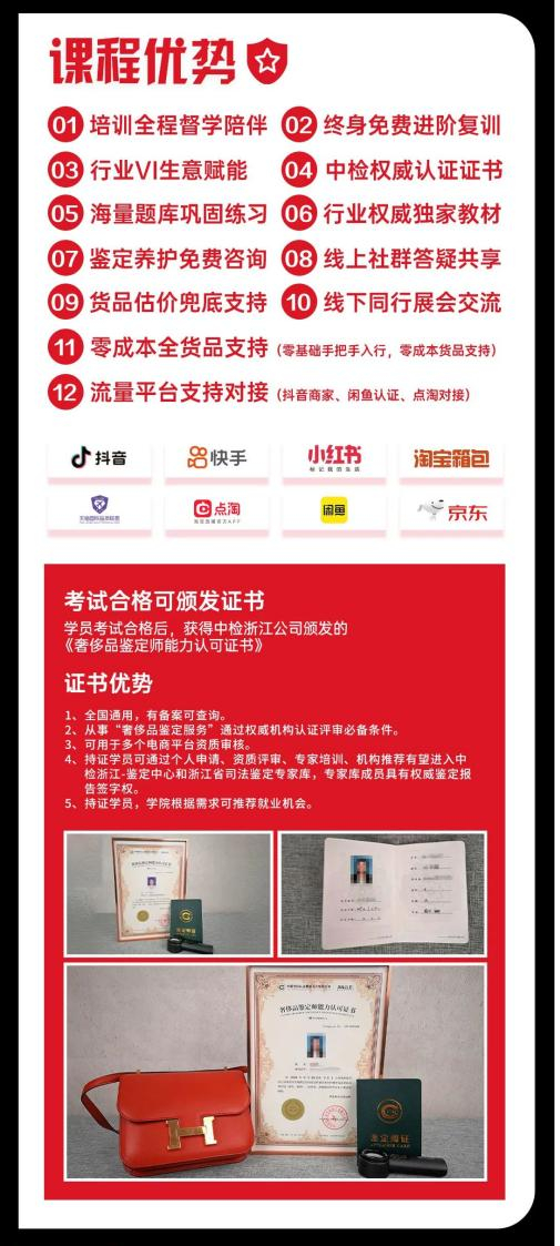 当安洁利把奢侈品鉴定实战班带到了重庆。受到了众多重庆学员的欢迎,很多学员说“终于等到安洁利来重庆开班,可以上家门口的奢侈品鉴定班啦!”王牌导师原班人马、12大福利、终身免费复训...