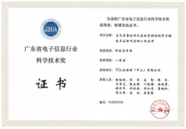 据悉,TCL空调此前就荣获广东省科技进步奖,本次TCL空调新风关键技术荣获广东省电子信息行业科技进步奖一等奖,是对TCL空调新风核心技术的权威认可。